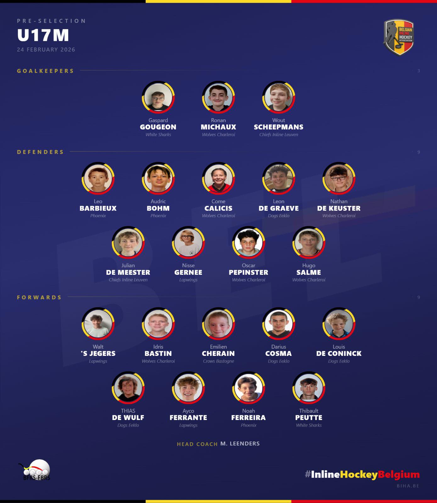 Les sélectionneur nationaux ont rendu publiques les premières pré-selections de l’ère BIHA entre ce 23 et 24 février 2026. Nos joueurs n’ont pas démérité et figurent en bonne place pour une éventuelle sélection pour la coupe du monde au Paraguay (U19M) et la coupe d’Europe en Irlande (U17).